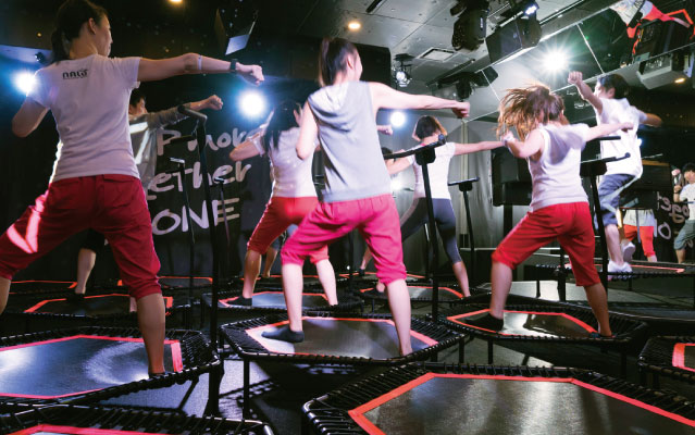 トランポリンはジョギングなどと比べ、関節にかかる負担が少なく、筋肉痛にもなりにくい。そのため、幅広い年代の方にお勧めできる運動です。難しい機器は使わず、跳びはねる動作により、全身を効率良く引き締めることができます。