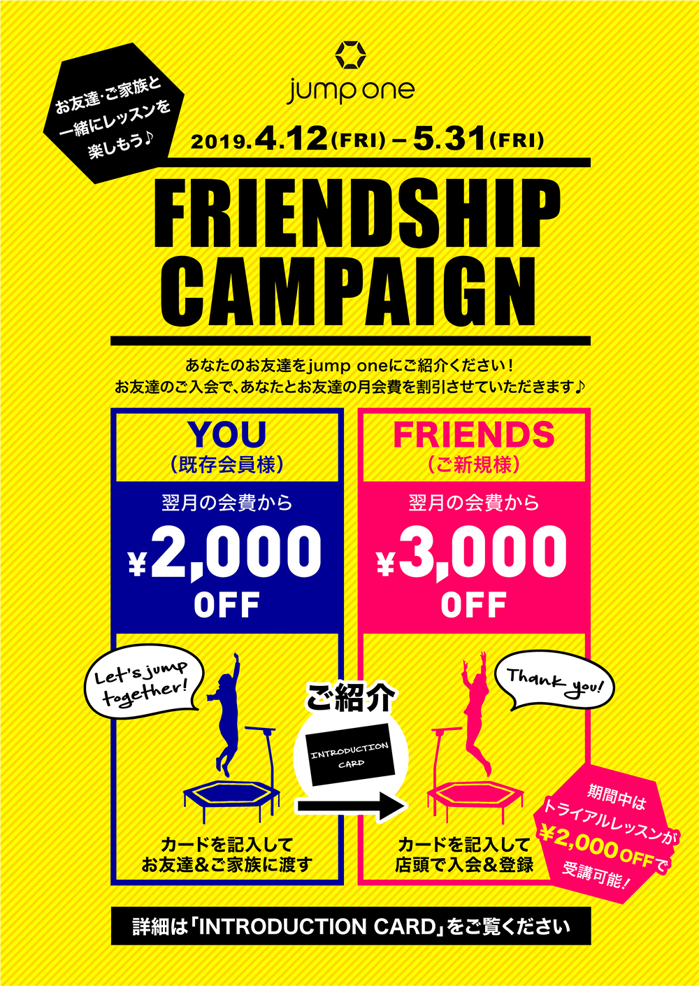 本日からjump one全店で『FRIENDSHIP CAMPAIGN』を実施いたします。