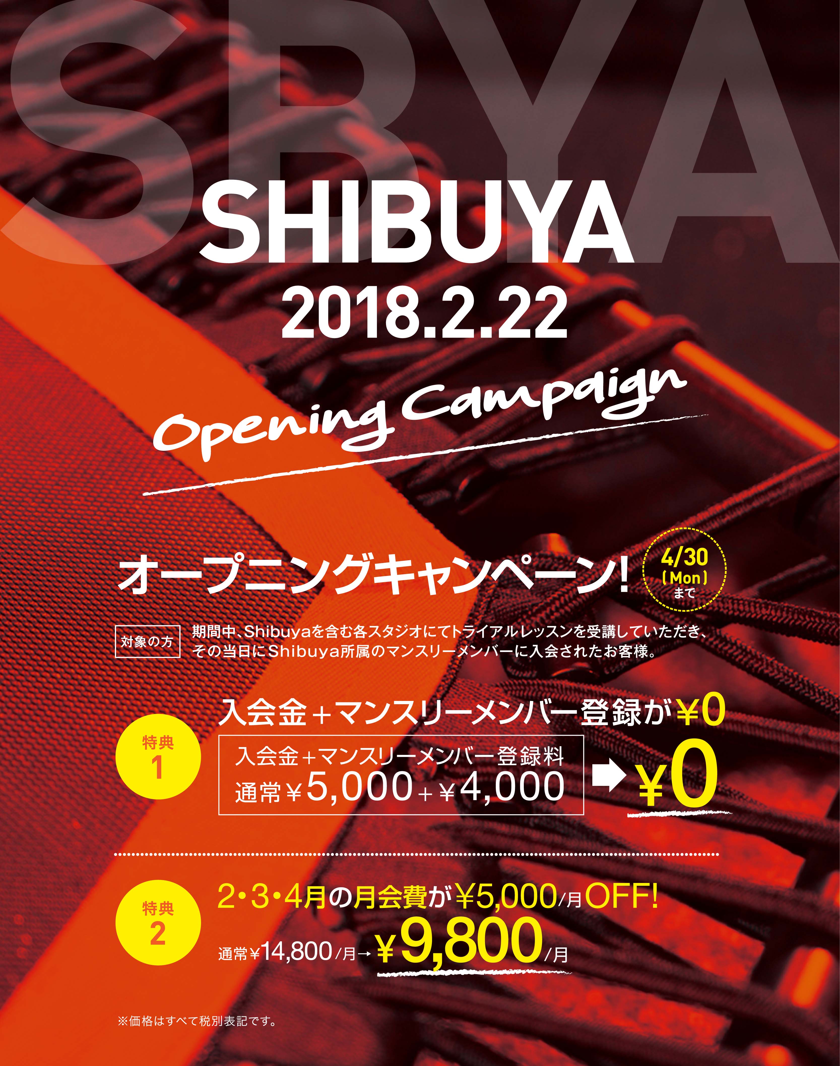 •2018/2/22(Thu)~2018/4/30(Mon)にShibuyaを含む各スタジオにてトライアルレッスンを受講していただき、その当日にShibuya所属のマンスリーメンバーに入会されたお客様が対象です。