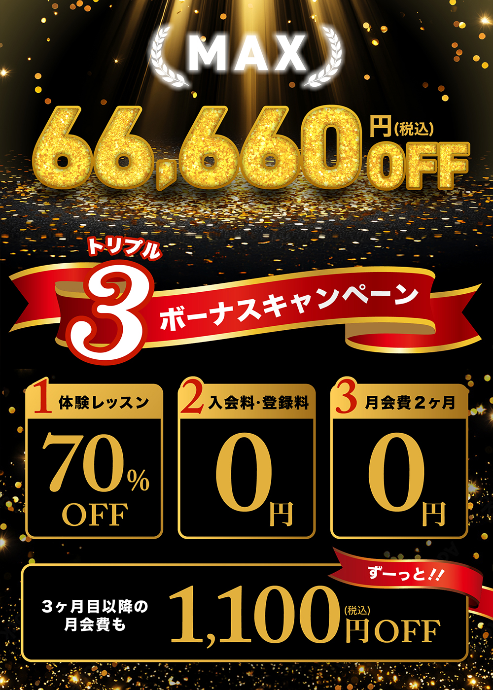 ※トリプルボーナスキャンペーンで、なんと最大【総額66,660円OFF】