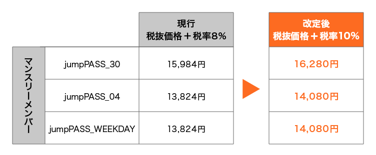 ■変更例: マンスリーメンバー(月会費)・・・現在の税抜価格+消費税率10%