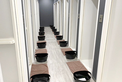ビルに入って、エスカレーターか階段で地下1階へお越しください。